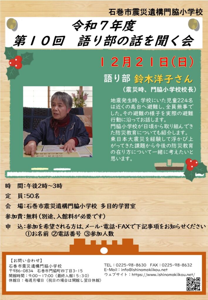 令和7年度 第10回語り部の話を聞く会のご案内(門脇小学校元校長)